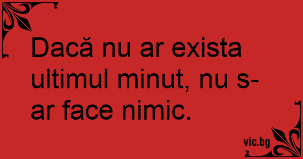 Dacă nu ar exista ultimul minut, nu s-ar face nimic.