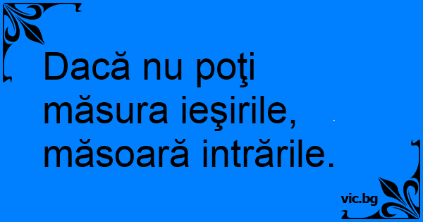 Dacă nu poţi măsura ieşirile, măsoară intrările.