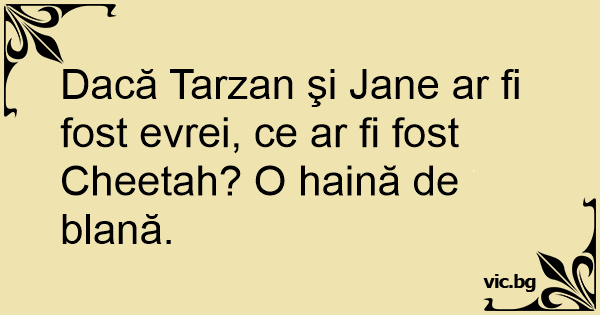 Dacă Tarzan şi Jane ar fi fost evrei, ce ar fi fost Cheetah? O haină de blană.