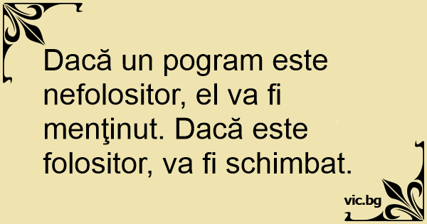 Dacă un pogram este nefolositor, el va fi menţinut. Dacă este folositor, va fi schimbat.