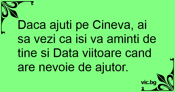 Daca ajuti pe Cineva, ai sa vezi ca isi va aminti de tine si Data viitoare cand are nevoie de ajutor.