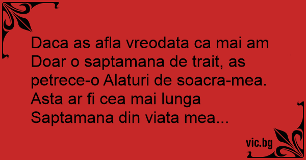 Daca as afla vreodata ca mai am Doar o saptamana de trait, as petrece-o Alaturi de soacra-mea.
