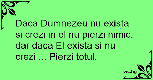 Daca Dumnezeu nu exista si crezi in el nu pierzi nimic, dar daca El exista si nu crezi ... Pierzi totul.