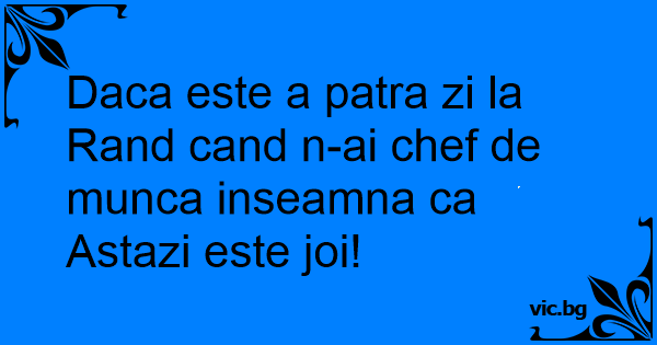 Daca este a patra zi la Rand cand n-ai chef de munca inseamna ca Astazi este joi!