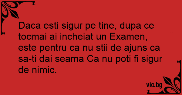 Daca еsтi sigur pe tine, dupa ce tocmai ai incheiat un Examen, este pentru ca nu stii de ajuns ca sa-ti dai seama Ca nu poti fi sigur de nimic.