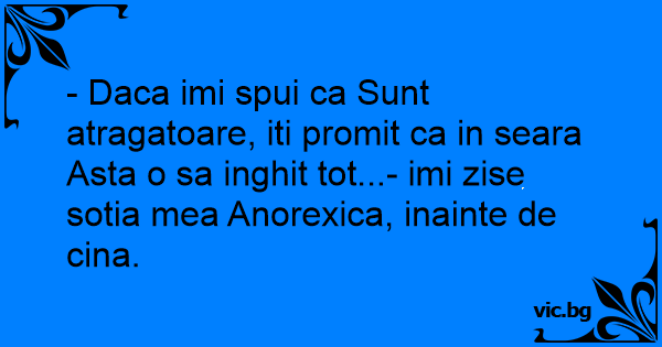 - Daca imi spui ca Sunt atragatoare, iti promit ca in seara Asta o sa inghit tot...- imi zise sotia mea Anorexica, inainte de cina.
