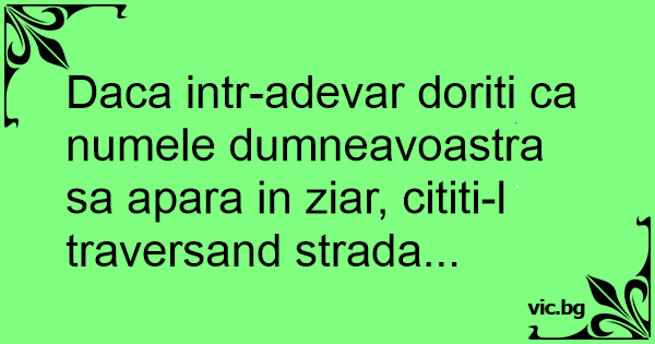 Daca intr-adevar doriti ca numele dumneavoastra sa apara in ziar, cititi-l traversand strada...