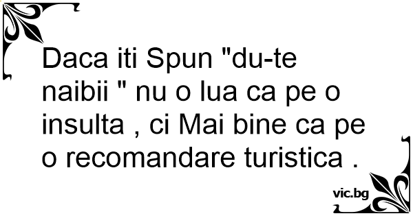 Daca iti Spun "du-te naibii " nu o lua ca pe o insulta , ci Mai bine ca pe o recomandare turistica .