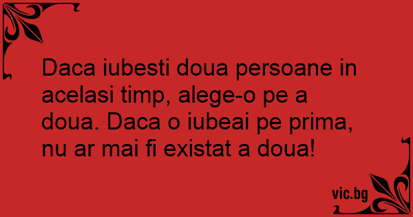Daca iubesti doua persoane in acelasi timp, alege-o pe a doua. Daca o iubeai pe prima, nu ar mai fi existat a doua!