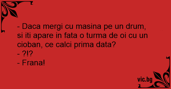- Daca mergi cu masina pe un drum, si iti apare in fata o turma de oi cu un cioban, ce calci prima data?