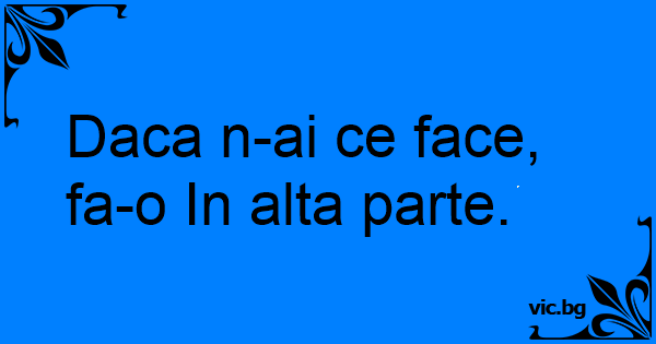 Daca n-ai ce face, fa-o In alta parte.