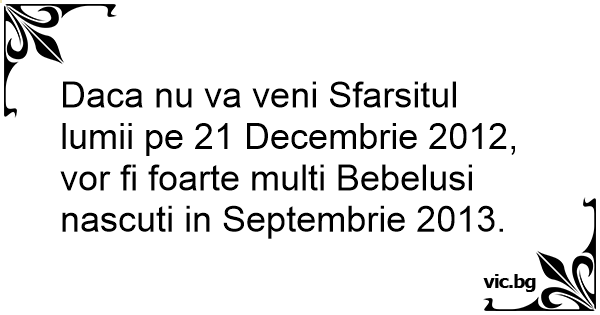 Daca nu va veni Sfarsitul lumii pe 21 Decembrie 2012, vor fi foarte multi Bebelusi nascuti in Septembrie 2013.