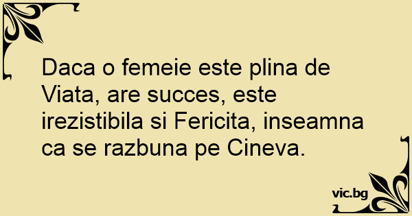 Daca o femeie este plina de Viata, are succes, este irezistibila si Fericita, inseamna ca se razbuna pe Cineva.