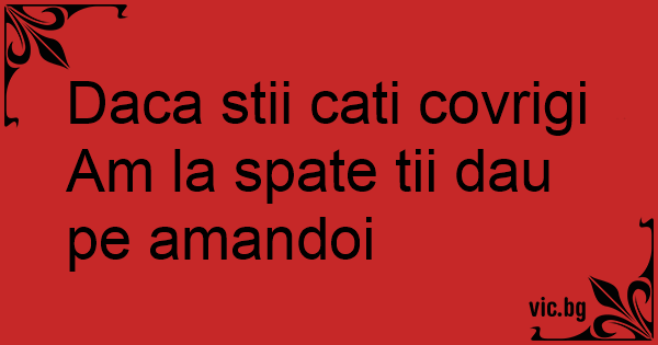 Daca stii cati covrigi Am la spate tii dau pe amandoi
