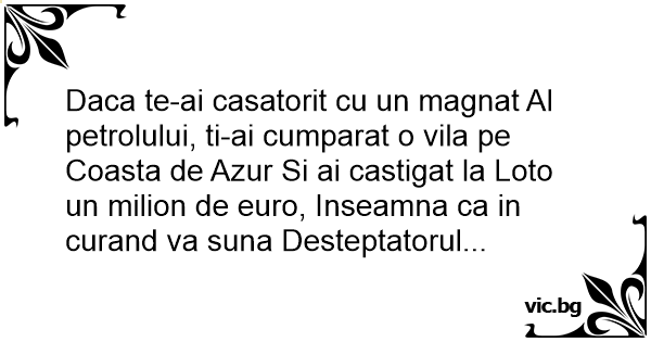 Daca te-ai casatorit cu un magnat Al petrolului, ti-ai cumparat o vila pe Coasta de Azur Si ai castigat la Loto un milion de euro, Inseamna ca in curand va suna Desteptatorul...