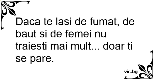 Daca te lasi de fumat, de baut si de femei nu traiesti mai mult... doar ti se pare.