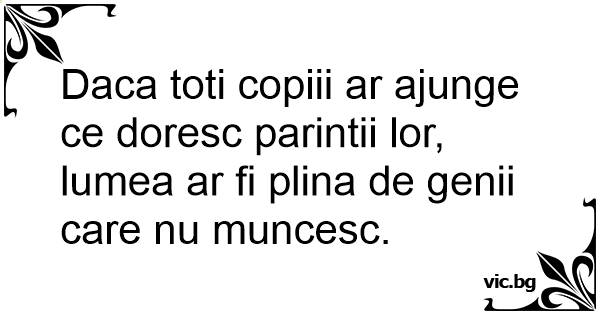 Daca toti copiii ar ajunge ce doresc parintii lor, lumea ar fi plina de genii care nu muncesc.