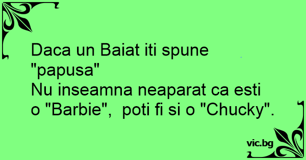Nu inseamna neaparat ca еsтi o "Barbie", poti fi si o "Chucky".