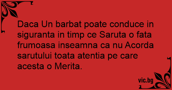 Daca Un barbat poate conduce in siguranta in timp ce Saruta o fata frumoasa inseamna ca nu Acorda sarutului toata atentia pe care acesta o Merita.