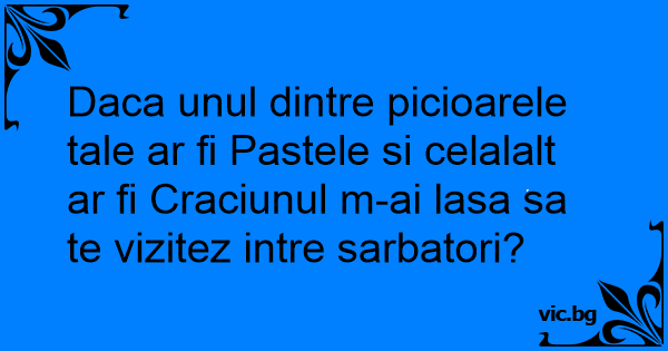 Daca unul dintre picioarele tale ar fi Pastele si celalalt ar fi Craciunul m-ai lasa sa te vizitez intre sarbatori?