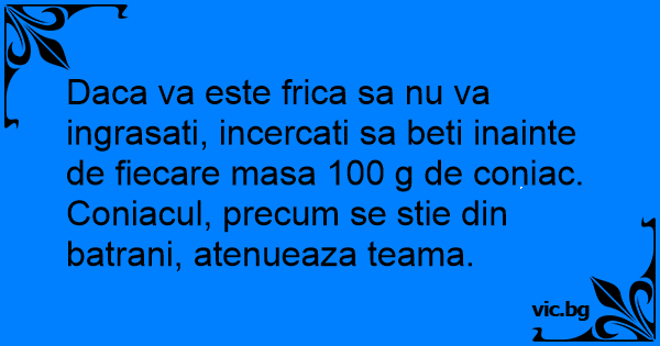Daca va este frica sa nu va ingrasati, incercati sa beti inainte de fiecare masa 100 g de coniac.