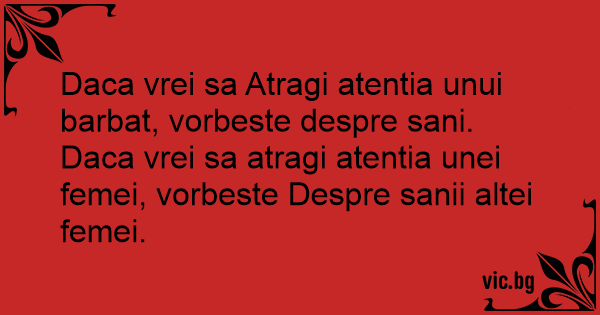Daca vrei sa atragi atentia unei femei, vorbeste Despre sanii altei femei.