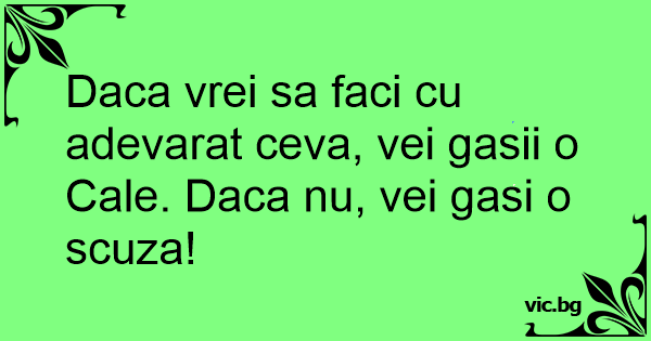 Daca vrei sa faci cu adevarat ceva, vei gasii o Cale. Daca nu, vei gasi o scuza!