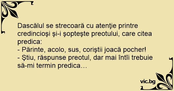 - Părinte, acolo, sus, coriştii joacă pocher!
