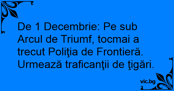 De 1 Decembrie: Pe sub Arcul de Triumf, tocmai a trecut Poliţia de Frontieră. Urmează traficanţii de ţigări.