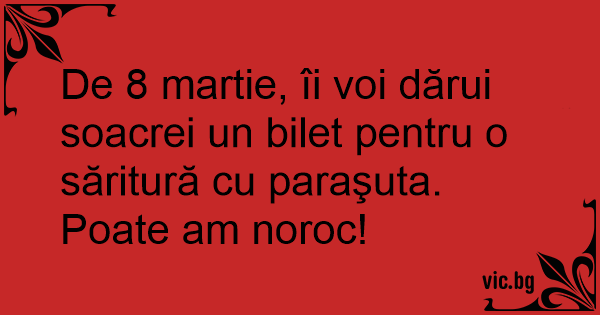 De 8 martie, îi voi dărui soacrei un bilet pentru o săritură cu paraşuta. Poate am noroc!
