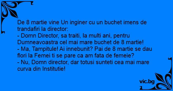 - Domn Director, sa traiti, la multi ani, pentru Dumneavoastra cel mai mare buchet de 8 martie!