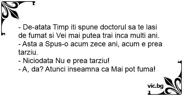- De-atata Timp iti spune doctorul sa te lasi de fumat si Vei mai putea trai inca multi ani.