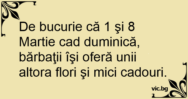 De bucurie că 1 şi 8 Martie саd duminică, bărbaţii îşi oferă unii altora flori şi mici cadouri.