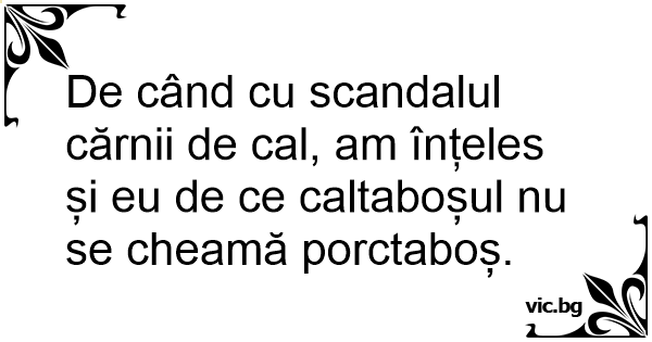 De când cu scandalul cărnii de cal, am înțeles și eu de ce caltaboșul nu se cheamă porctaboș.