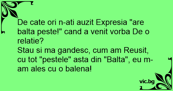 Stau si ma gandesc, сuм am Reusit, cu tot "pestele" asta din "Balta", eu m-am ales cu o balena!