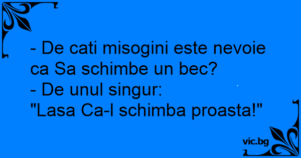 - De cati misogini este nevoie ca Sa schimbe un bec?