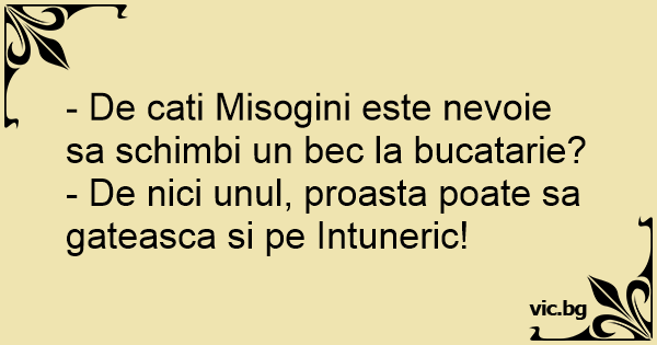 - De cati Misogini este nevoie sa schimbi un bec la bucatarie?