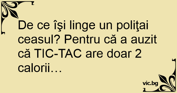 De ce îşi linge un poliţai ceasul? Pentru că a auzit că TIC-TAC are doar 2 calorii…