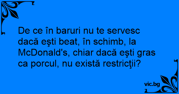 De ce în baruri nu te servesc dacă eşti beat, în schimb, la McDonald's, chiar dacă eşti gras ca porcul, nu există restricţii?