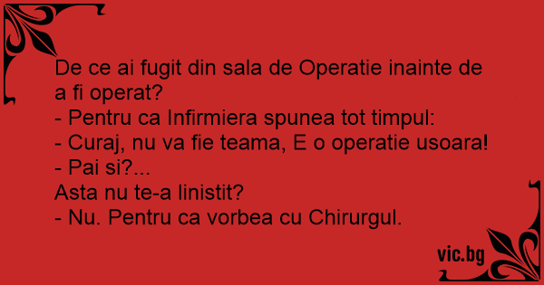 De ce ai fugit din sala de Operatie inainte de a fi operat?