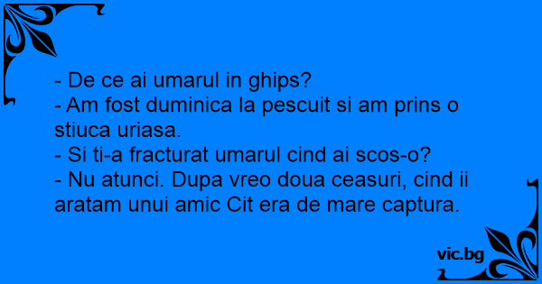 - De ce ai umarul in ghips?...