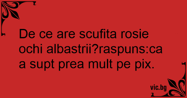 De ce are scufita rosie ochi albastrii?raspuns:ca a supt prea mult pe pix.
