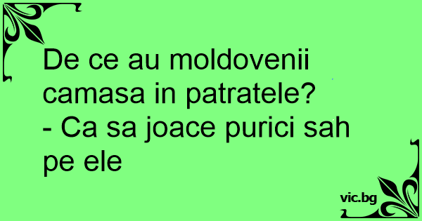 De ce au moldovenii camasa in patratele? - Ca sa joace purici sah pe ele 69 0 0 Bancuri cu moldoveni Bancuri cu olteni