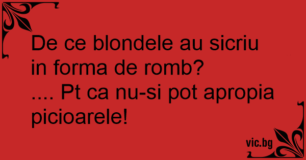 - De ce sunt blondele inmormantate in Sicrie triunghiulare? - Pentru ca de fiecare data Cand inchid ochii deschid picioarele!