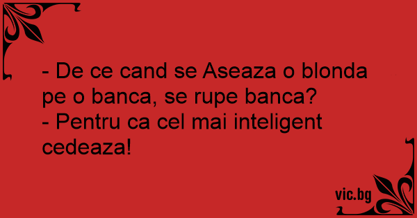 - De ce cand se Aseaza o blonda pe o banca, se rupe banca?