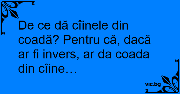 De ce dă cîinele din coadă? Pentru că, dacă ar fi invers, ar da coada din cîine…