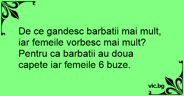 Pentru ca barbatii au doua capete iar femeile 6 buze.