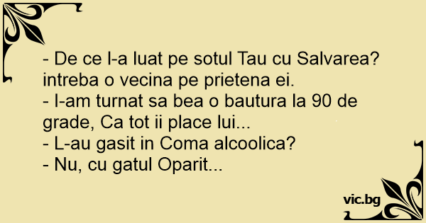 - De ce l-a luat pe sotul Tau cu Salvarea? intreba o vecina pe prietena ei.