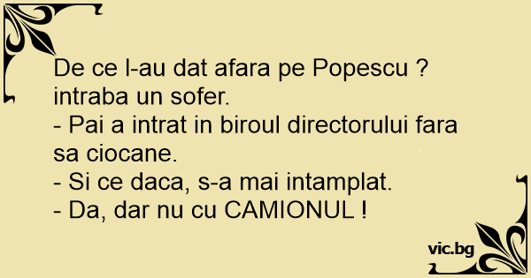 De ce l-au dat afara pe Popescu ? intraba un sofer.
