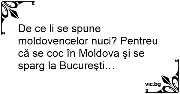 De ce li se spune moldovencelor nuci? Pentreu că se coc în Moldova şi se sparg la Bucureşti…